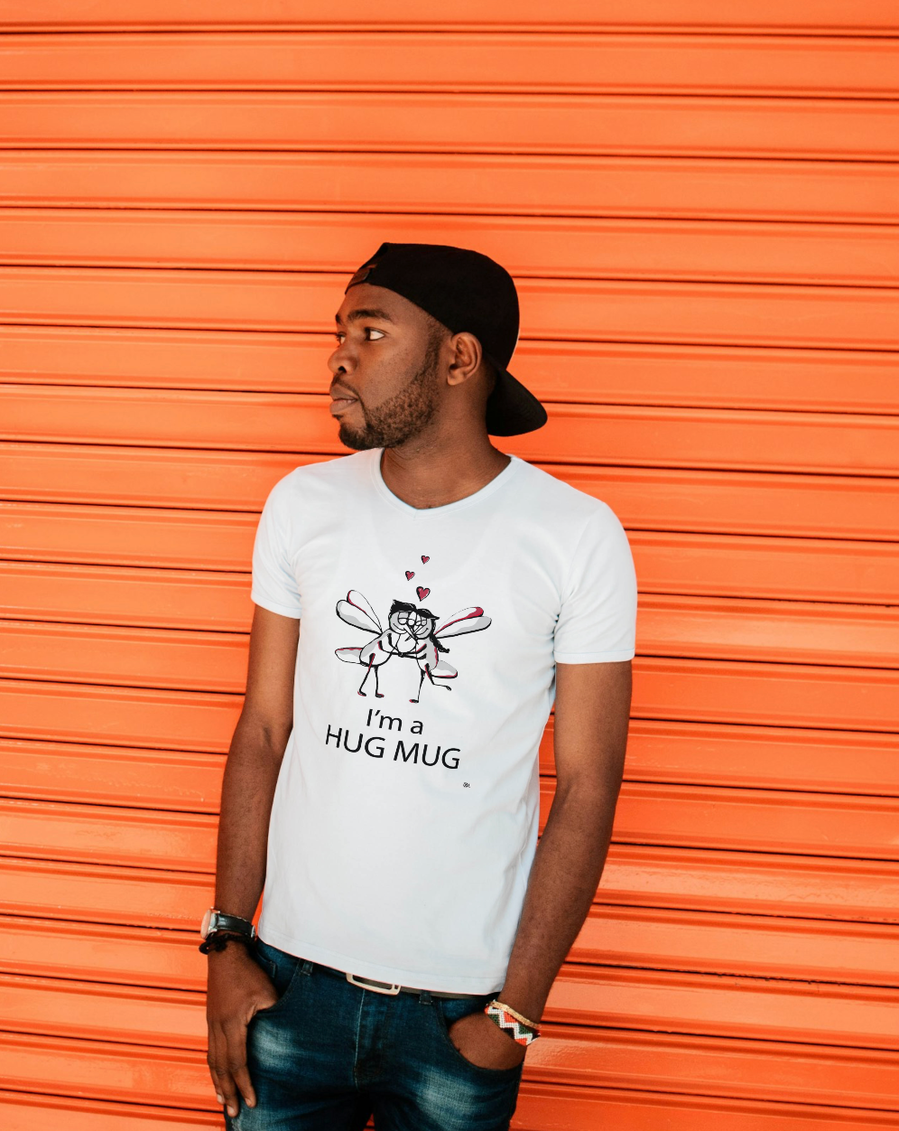 Twee muggen die elkaar stevig vasthouden, omdat sommige knuffels je gewoon beter doen voelen. En als je uit Haarlem komt (of er eentje in je hart draagt), snap je deze meteen: